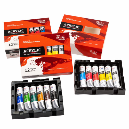 Основні характеристики Набір акрилових фарб 12*20мл, блістер, ROSA Studio