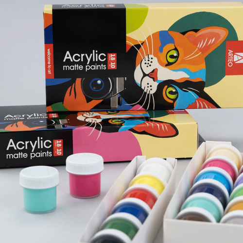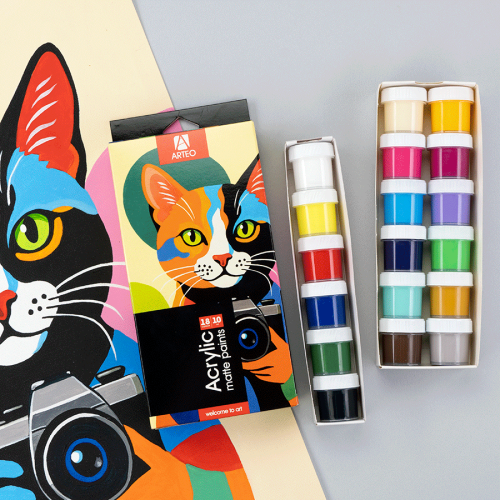Набір акрилових фарб ColorCat матовий 18x10 мл Arteo — це чудовий вибір для створення яскравих і радісних картин. Замовляйте в Mir-arta — даруйте кольорам життя!