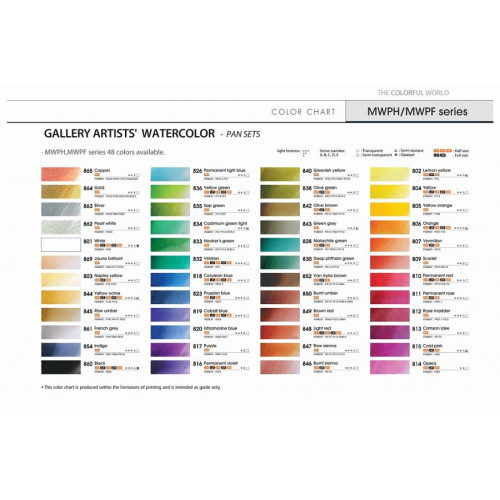 Акварель PROFESSIONAL WATERCOLOR PAN приведе до нового досвіду та справжнього задоволення від магічних відтінків для професійних художників. Фарба виготовляється виключно з суміші пігменту та гуміарабіку, без додаткових наповнювачів. Завдяки цьому можна отримати яскраву інтенсивність кольору та чудову реакцію при розведенні. Кольори прекрасно змішуються пропонуючи чудові тонкі відтінки.