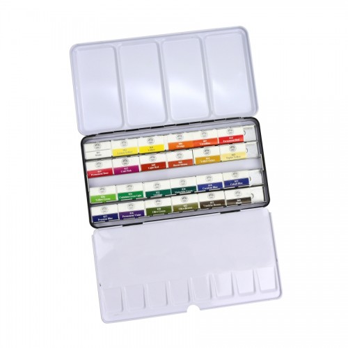 Акварель представлена в зручному елегантному металевому пеналі. Зручна металева застібка у нижній частині – для надійного утримання під час втілення Ваших мрій на папері.