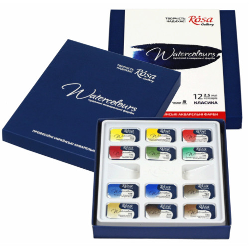 Опис Набір акварельних фарб "Класика", 12 кол., кювета, картон, ROSA Gallery