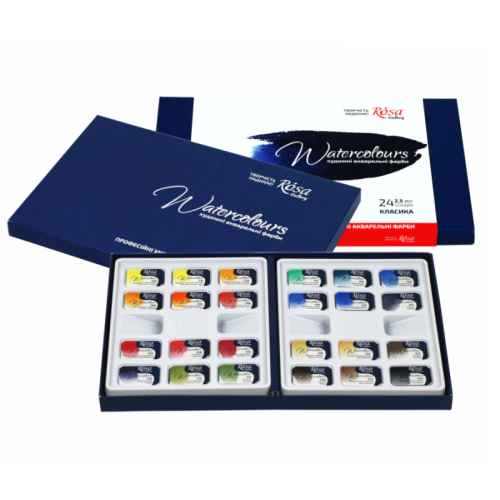 Опис Набір акварельних фарб "Класика", 24 кол., кювета, картон, ROSA Gallery