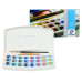 24 кольори в кюветах, пензлик, в пластиковому пеналі.