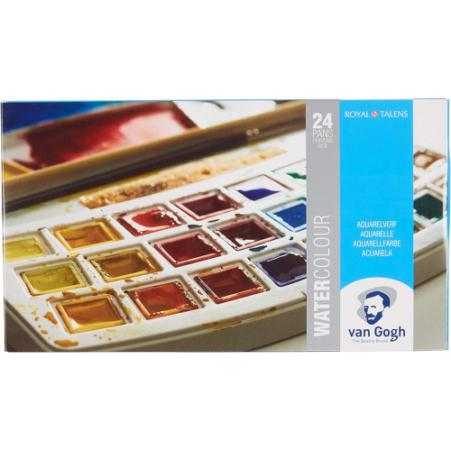 Опис Набір акварельних фарб, VAN GOGH, 24 кювети+пензлик, +спонж, пластик, Royal Talens