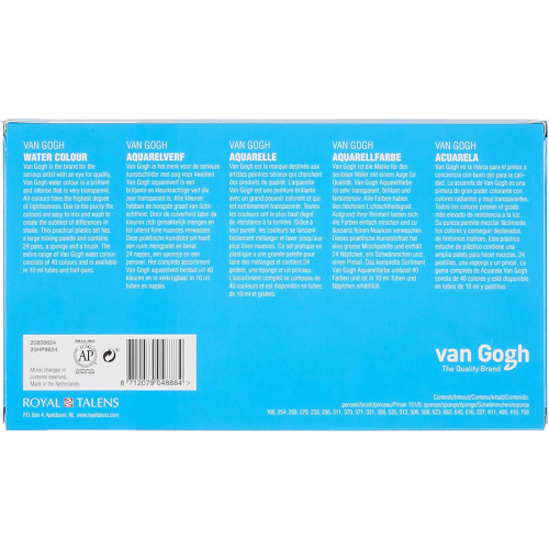 Основні характеристики Набір акварельних фарб, VAN GOGH, 24 кювети+пензлик, +спонж, пластик, Royal Talens