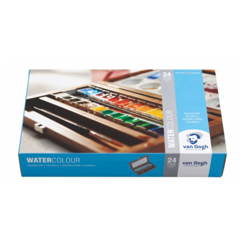 Опис Набір акварельних фарб, VAN GOGH, 24кювети,пензлі - 2шт, палітра, дер.коробка, Royal Talens
