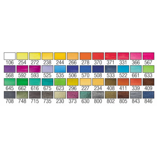 48 кольорів в кюветах, пензлик, в пластиковому пеналі.