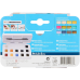 12 кольорів в кюветах, пензлик, в пластиковому пеналі.