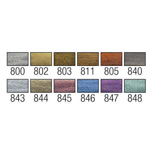 Фарби: Фарби: Срібло (800), Світле золото (802), Темне золото (803), Мідь (805), Бронза (811), Графіт (840), Інтерферентний білий (843), Інтерферентний жовтий (844), Інтерферентний червоний (845), Інтерферентний синій (846), Інтерферентний фіолетовий (847), Інтерферентний зелений (848).