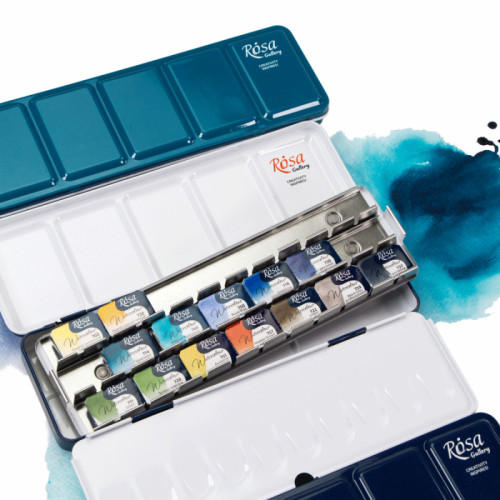 Відгуки про Пенал металевий для акварельних фарб на 21 кювет бірюзовий ROSA Gallery