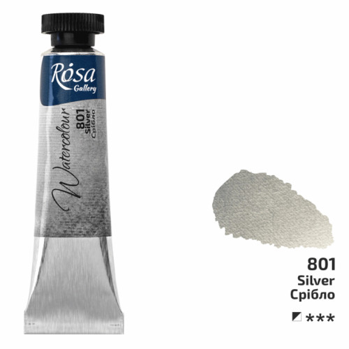 Основні характеристики Фарба акварельна в тубах 10 мл Срібло ROSA Gallery 3211801
