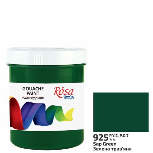 Фарба гуашева, Зелена травяна, 100мл, ROSA Studio (3230925)Гуаш художня ROSA STUDIO - чудове рішення для тих, хто опановує живопис і декоративно – прикладне мистецтво.Властивості:- Гуаш високопігментована - має гарну покривну здатність;- Кольори насичені навіть після висихання - не світліють;- Фарби легко змішуються і не дають бруду (при змішуванні до 3-х кольорів);- Завдяки сметанковій консистенції фарба лягає на поверхню рівномірним шаромГама: 30 базових кольорів, які дозволяють отримати нові відтінки при змішуванні.Доступні в банках:40мл - усі кольори;100мл - 28