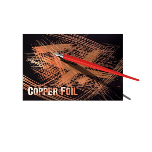Фольга для гравюри ESSDEE — це оригінальний матеріал для створення гравюр з ефектом теплого мідного сяйва. Поверхня аркуша покрита чорним шаром, який знімається різцем, відкриваючи металевий блиск міді під ним.