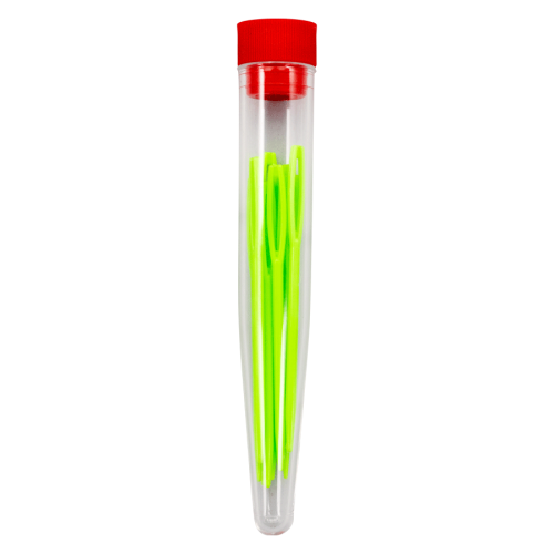 Матеріал: міцний пластик салатового кольору. Кількість: 10 штук. Велике вушко дозволяє легко вдягати товсту пряжу, нитки чи шнури, а гладка поверхня запобігає зачепам і забезпечує комфортне ковзання. Спиці не гнуться, не ламаються та служать довго.