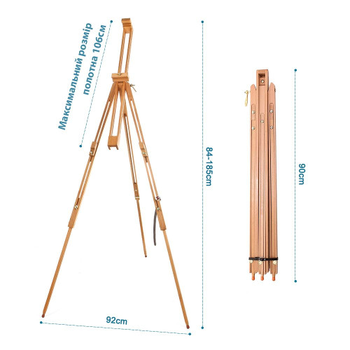 Купити мольберт-тринога бук 96х96х125 (192) см висота полотна до 106 см SINOART на Mir-Arta — оригінальна продукція SINOART за найкращими цінами з доставкою Києвом, Львовом, Одесою, Дніпром, Харковом та будь-яким містом України.