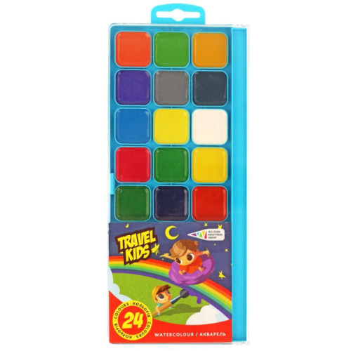 Опис Набір дитячої акварелі TRAVEL KIDS, 24 кол б-пензлі, пластик, ГАММА (312082-TK)