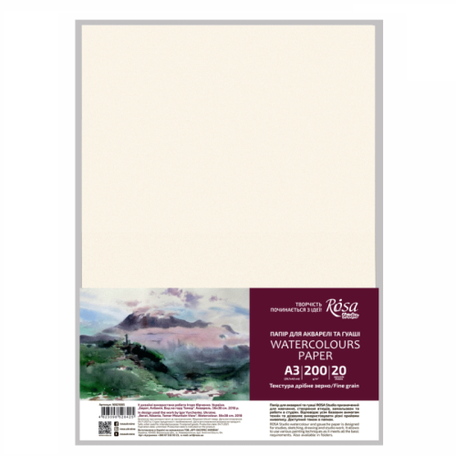 Папір для акварелі ROSA Studio щільністю 200 г/м2 дрібнозерниста підходить для всіх базових технік в роботі акварелі та гуаші. дрібними деталями. Універсальне проклеювання дозволяє зберегти насиченість і яскравість кольорів фарб після висихання, а також сприяє плавному переходу кольорів, що в свою чергу дає можливість показати переходи між відтінками кольорів.