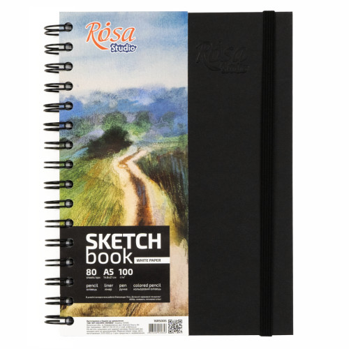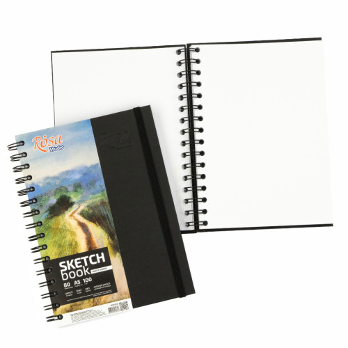 Основні характеристики Блокнот на спіралі A5 (14,8х21см), 100г/м2, 80л, чорний, ROSA Studio