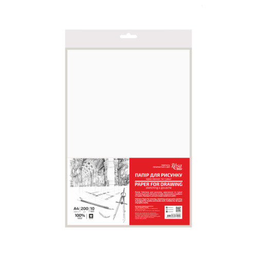 Опис Папір для рисунку та креслення, пакет, А4 21х29,7 см 10арк, дрібне зерно, 200г/м2, ROSA Studio 169221002