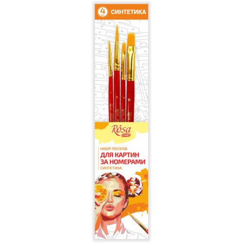 Основні характеристики Набір, пензлі для картин, синтетика, 4 шт, кругла (№1,6), плоска (№4,10) ROSA START