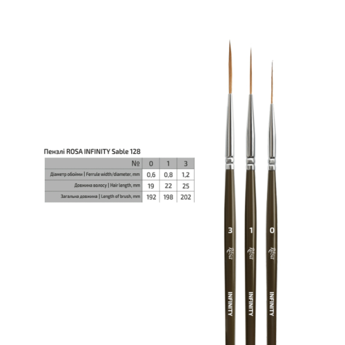 Основні характеристики пензлів з волосся соболя лайнери INFINITY 128: