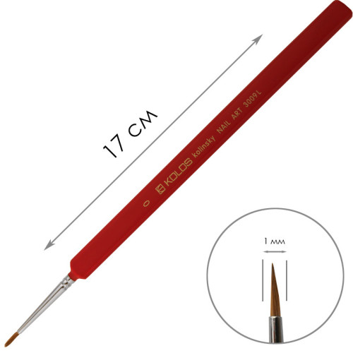 Опис Пензель Колонок круглий, Nail art 3009L, №0, коротка ручка KOLOS