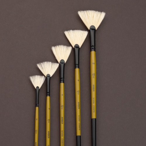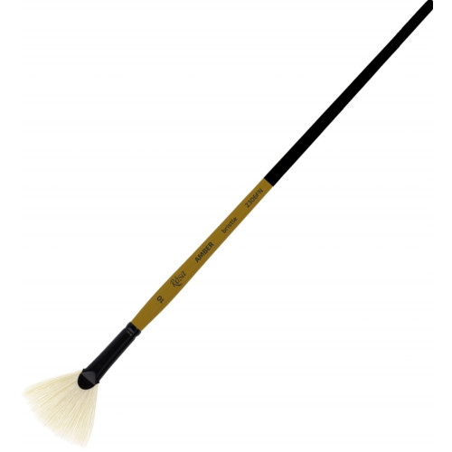 Форми пензлів серії AMBER включають круглу, плоску, овальну, віялову та флейц. Віялові пензлі допомагають створювати спеціальні ефекти і текстури, добре підходять для малювання трави, листя, хвиль та інших деталей.