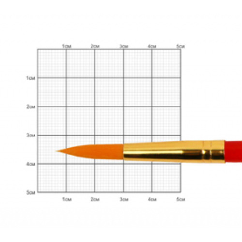 Стандартна виставка робочої частини. Рижа синтетика, відрізняється винятковою еластичністю і пружністю волосяного пучка. Призначений для нанесення фарби лінією з незмінною товщиною, або лінією, що варіюється по товщині. За рахунок простого, але не менш функціонального дизайну та коротшого волосу, ще доступніший для юних художників та нескладних робіт. Цей чудовий пензель служить для малюнка, створення фактури, роботи над деталями.