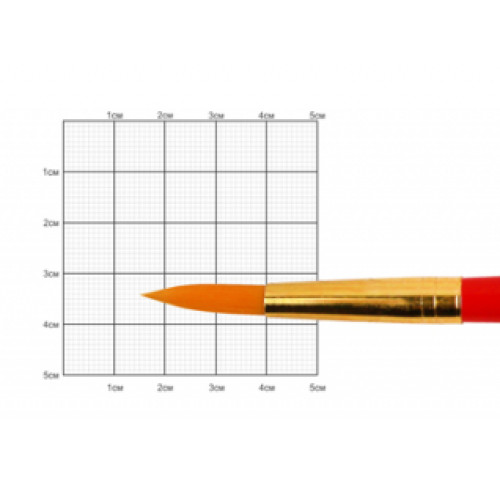 Стандартна виставка робочої частини. Рижа синтетика, відрізняється винятковою еластичністю і пружністю волосяного пучка. Призначений для нанесення фарби лінією з незмінною товщиною, або лінією, що варіюється по товщині. За рахунок простого, але не менш функціонального дизайну та коротшого волосу, ще доступніший для юних художників та нескладних робіт. Цей чудовий пензель служить для малюнка, створення фактури, роботи над деталями.